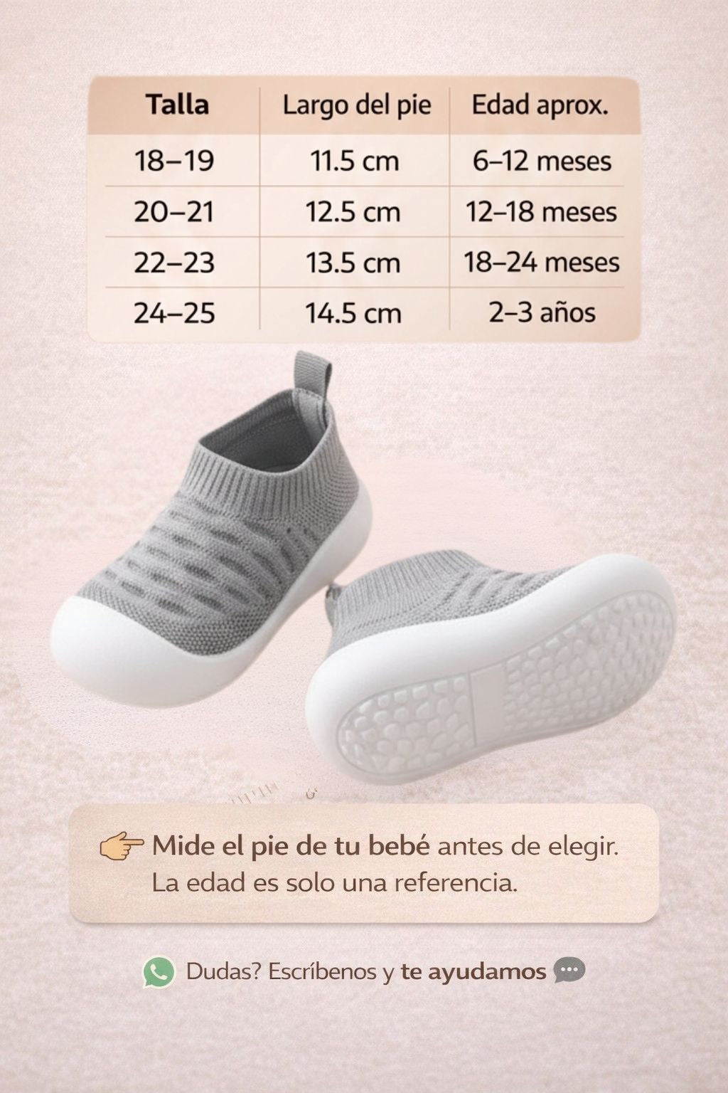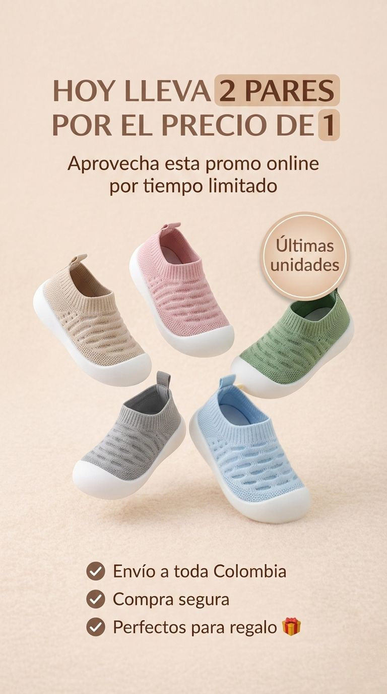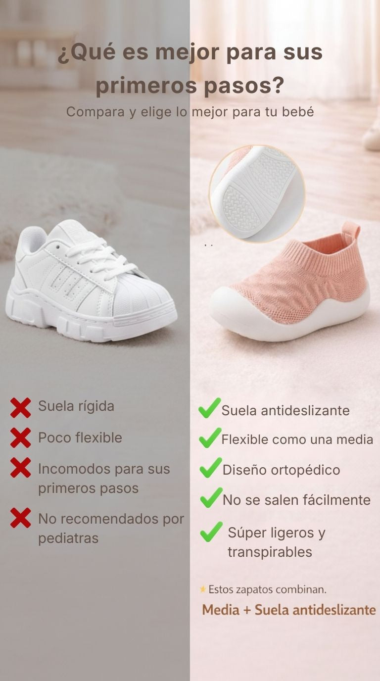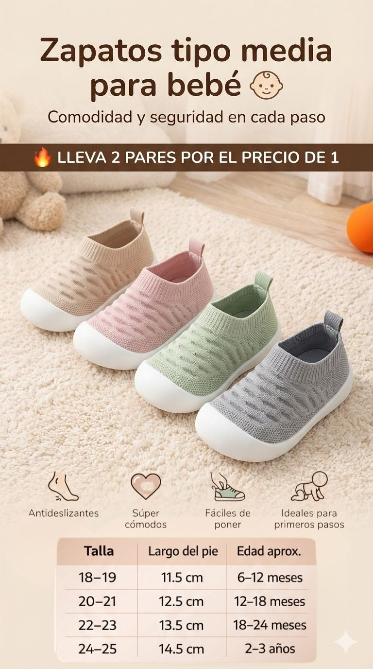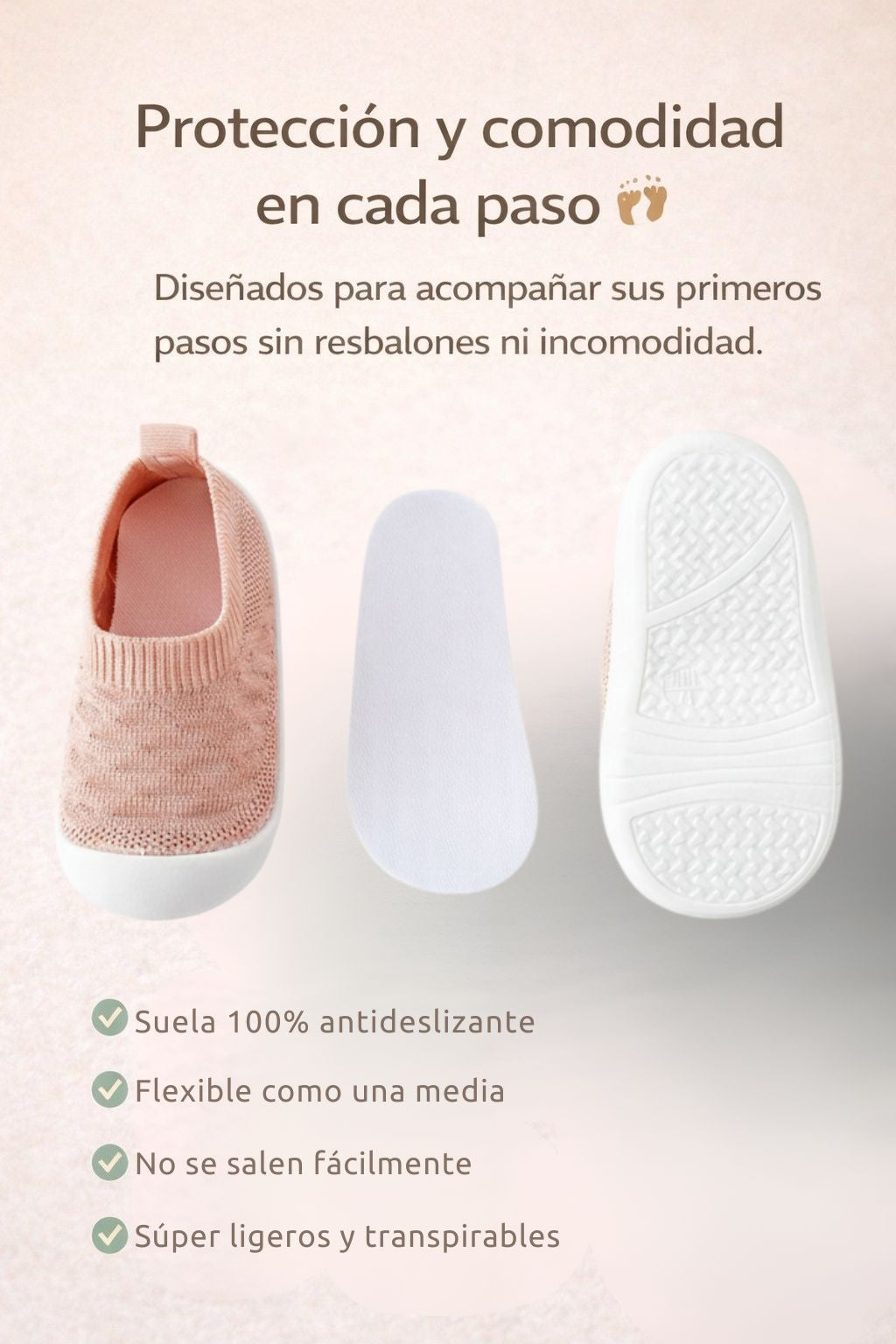 - Acompaña los primeros pasos de tu bebé con la suavidad de una media y la protección de un zapato. Nuestras medias zapato antideslizantes están diseñadas para cuidar los piecitos mientras tu bebé gatea, se pone de pie y comienza a explorar el mundo con seguridad.